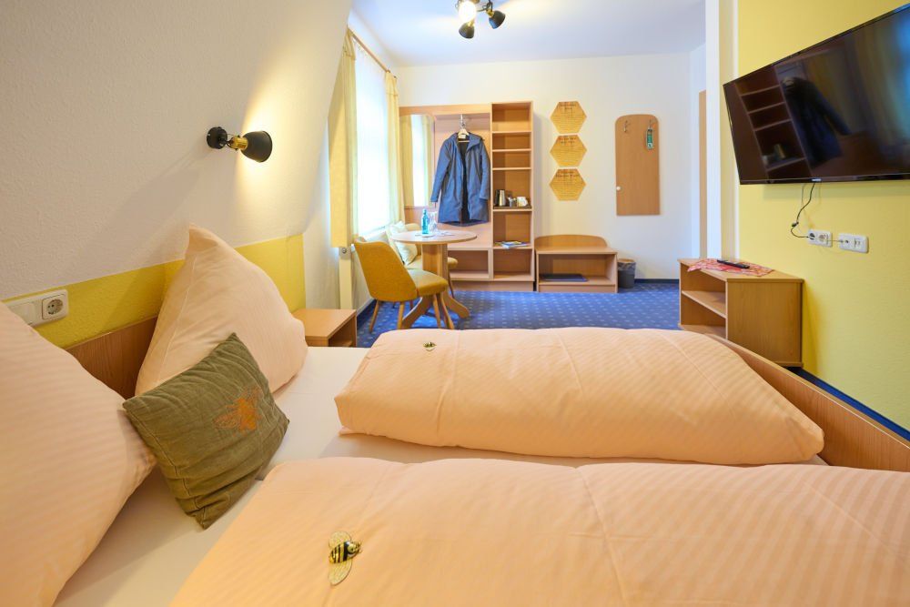 Unsere Doppelzimmer im Hotel haben eine Größe von 23-35 m². Ausgestattet mit einer Sitzecke, Flach TV, freies W-LAN/WiFi, Tee- und Kaffeebar, eine Flasche Wasser, Bad mit Dusche, Hand- und Duschseife, Haartrockner.